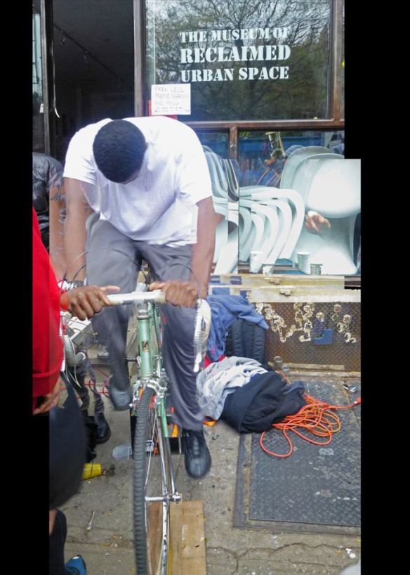 Bike powered electricity on Loisaida Ave, photo: David Schmidlapp