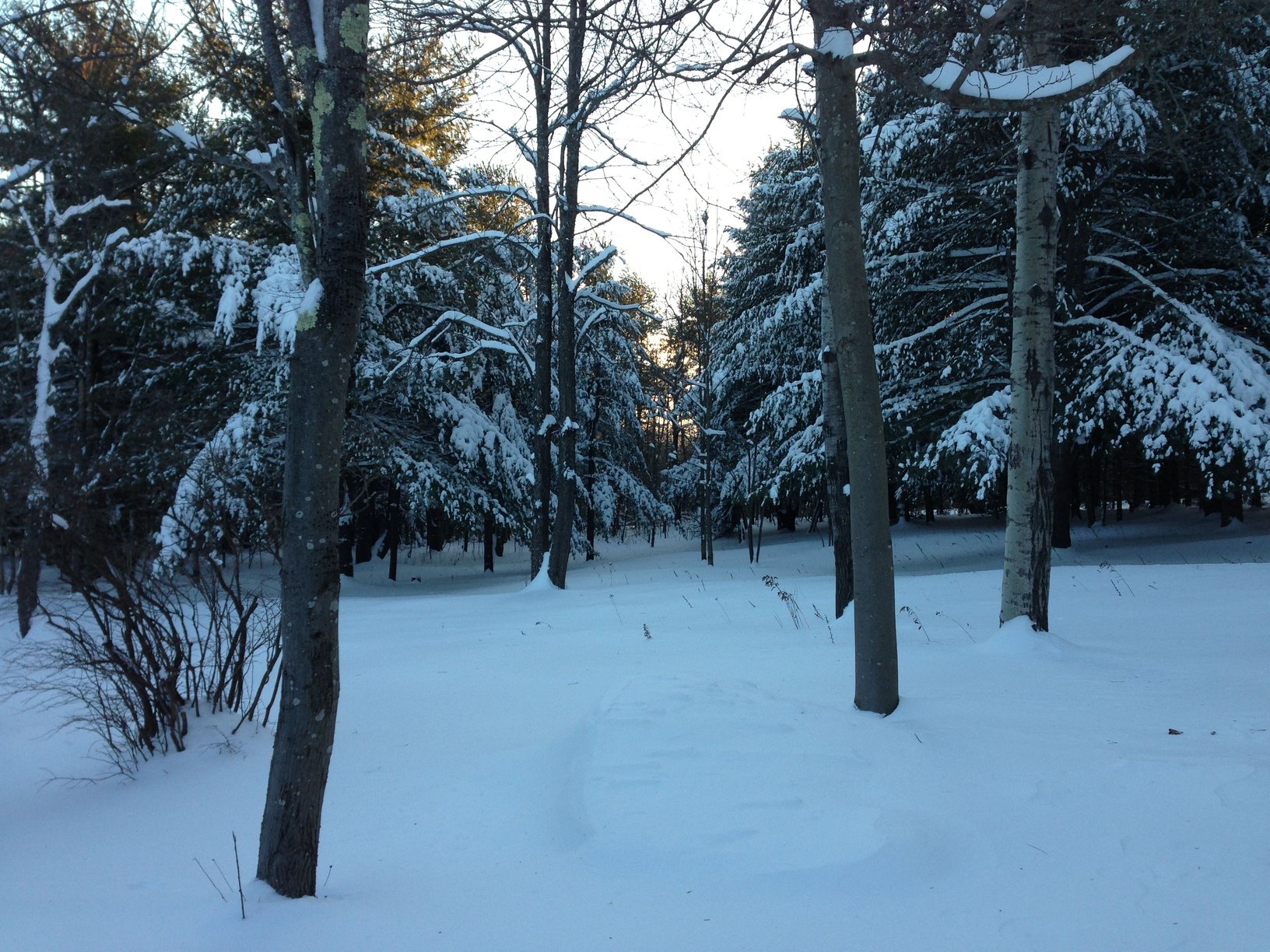 We said hello to 2013 at our off-the grid getaway in New York’s Schoharie Valley. We arrived to over a foot of newly fallen snow and a clear starry night illuminated by the full moon. Ice crystals sparkled like diamonds in the moonlit blue snow. The silhouette of tall pines and naked hardwood trees were black against the blue ice.