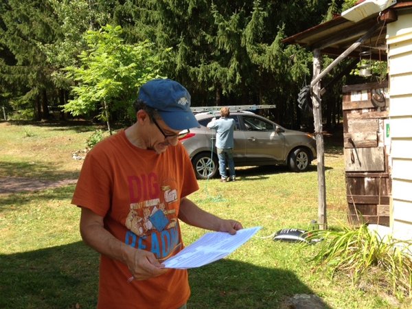 We installed a solar system last summer and then we yearned for more connections. Namely, phone and internet. We don’t get a strong enough signal to use our cellphones. Year by year, the signal inched tantalizingly closer to us. The first year, we could sometimes make a call if we stood next to a chicken coop about a half mile up the road. It depended on the weather. Now the signal is just a quarter of a mile away. Our next door neighbor has two bars on an elevated spot on her land so we tried climbing ladders in different spots in our meadow. We even went into the forest and climbed to the top of an abandoned deer stand. Nada.
