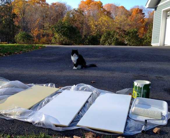 Using my general direction but making her own choices, Camelia picked beautiful colors. She picked Benjamin Moore’s Silver Cloud for the living room/kitchen. It is a luminescent greyish blue color that changes with the light and made the room look soothing and fresh. In the late afternoon sun, a wall might look white one place, a soft grey or blue in another – an interesting chameleon-like color. The white trim of the windows looked crisp against it even though they had not been repainted.