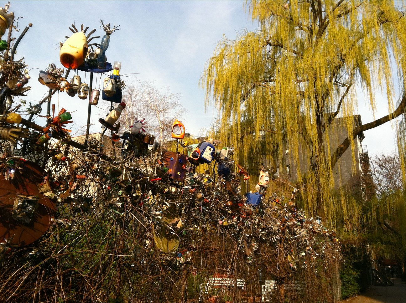 Last weekend we had the first sunny and warm days of spring. I visited community gardens with my friend Katy and our phone cameras. We stopped by 6BC Botanical Garden first. This garden began in 1981 and is a lovingly cared for and peaceful place. In the book Community Gardens of the East Village, gardener Cary York says, “One thing they did design wise that was so important was that someone wanted to build the raised boxes, and Diana said “Don’t do it, don’t do it. Well, if you’re going to do it, do them on a diagonal.” So suddenly, the garden had this whole diagonal thing which is so nice because it’s against the grid. Little by little people started lifting up the boxes and letting the soil be in the soil.”