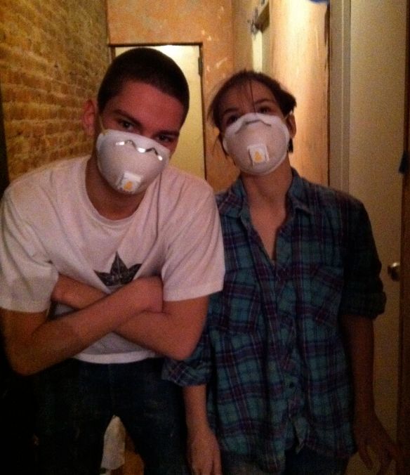 Then the novelty of the last phase wore off and so it was time for the next. The doors leading to the girl’s room and the bathroom were filmsy hollow doors. I never liked them. I like the feeling of opening and closing a solid wood door. I shopped around for wooden doors and they were too extravagant for my purse. In New York City, we have a great resource. Build it Green! NYC is a recycling project, a place where contractors can donate excess stuff from construction/renovation projects and others can buy it. I snapped up the two paneled wooden doors for 60 bucks! Then we got molding to frame the new doors with. That was always the vision, a posh entryway with elegant molding. As my friend Linda says “molding brings the eye up and up and up”. It gives the illusion of higher ceilings, a welcome thing in a narrow hallway.