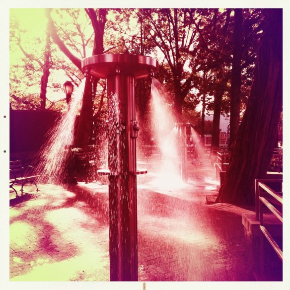 I run into a lot of my neighbors at the Loisaida Country Club. Some are swimming friends that I only run into at the pool year after year. One summer when I missed weeks of swimming, one of my swimming friends actually hunted down my phone number to call to see if I was okay. There is a comforting routine to it all. Swimmers come at the same time every morning and mostly swim in the same lanes. Scott always does sun salutations before his swim. Robert likes the water icy and complains when it’s too warm. I asked Barbara who bikes over from Williamsburg why she doesn’t go to the newly renovated McCarren pool. Isn’t it an Olympic sized pool, I ask? Yes, said Barbara, “But they make you swim the short way, 25 meters”. That’s stupid, I responded. “Yes, it is”, says Barbara, “25 meters is indoor pool”.