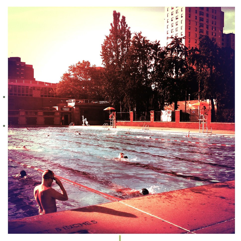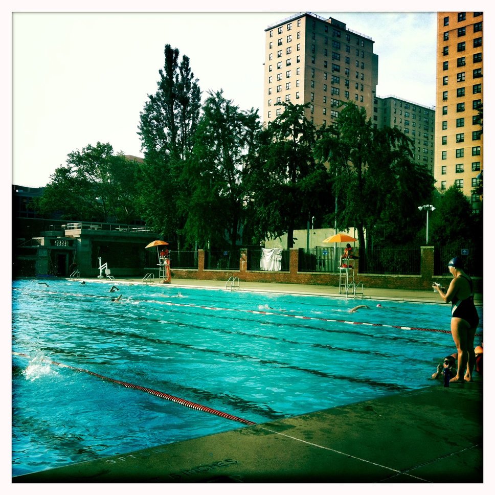 The pool, like all the other city pools has a very civilized program in the summer for adult swim – hours for purely laps, no playing or floating around. I am a big fan of the Early Bird swim and I will only miss it when there is thunder or a downpour and they close the pool.